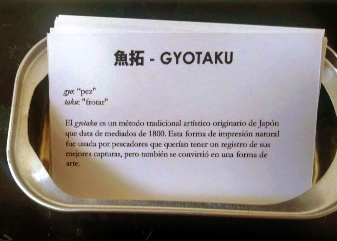 TécnicaGyotaku es una técnica japonesa que surge en el siglo XIX (coetánea a la publicación de la novela), utilizada por los pescadores que – a modo de publicidad – estampaban sus capturas y escribían su peso, tamaño, fecha de pesca y precio.