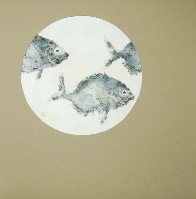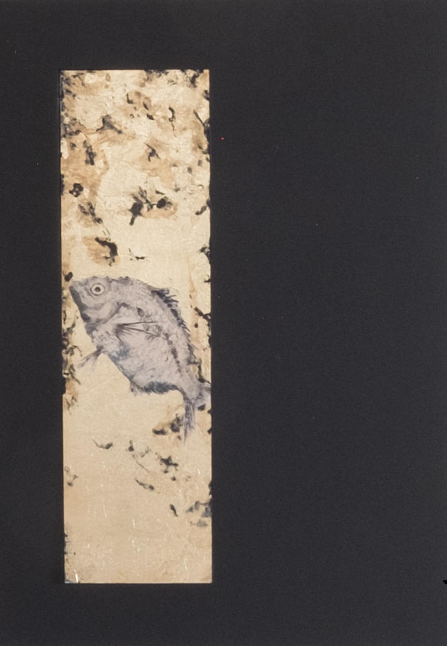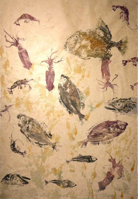 FILOSOFÍA. Técnica Gyotaku sobre papel hecho a mano. Tinta wasi y acuarela. VENDIDO
