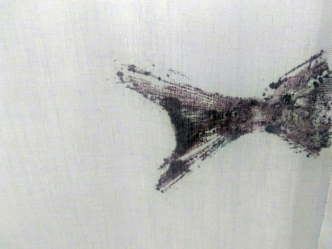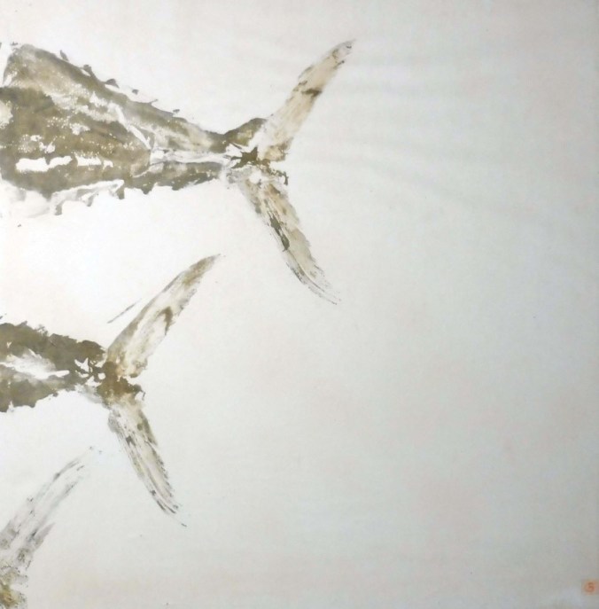 OLEAJE. Técnica Gyotaku sobre tela. Tinta wasi y acuarela.